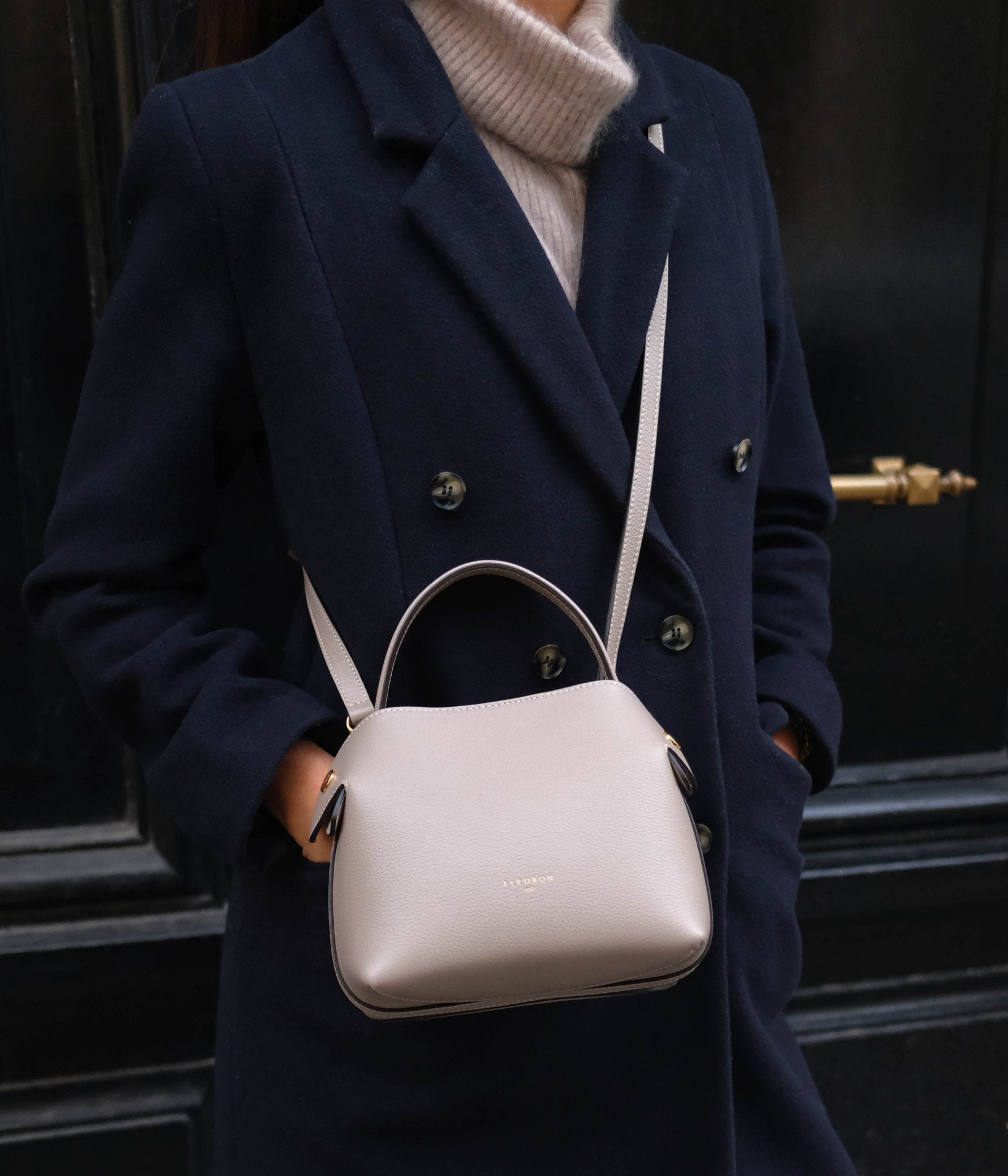Handcrafted in our Italian atelier from grained calfskin and finished with gold-tone details, the Mini Swann Cashmere can be carried by hand, over the shoulder, or crossbody. It closes with an automatic magnetic clasp and opens to a bright beige interior. Its sides, fitted with magnetic folds, gently open to let the removable strap pass over the top for shoulder or crossbody wear, or fall gracefully when carried by hand.