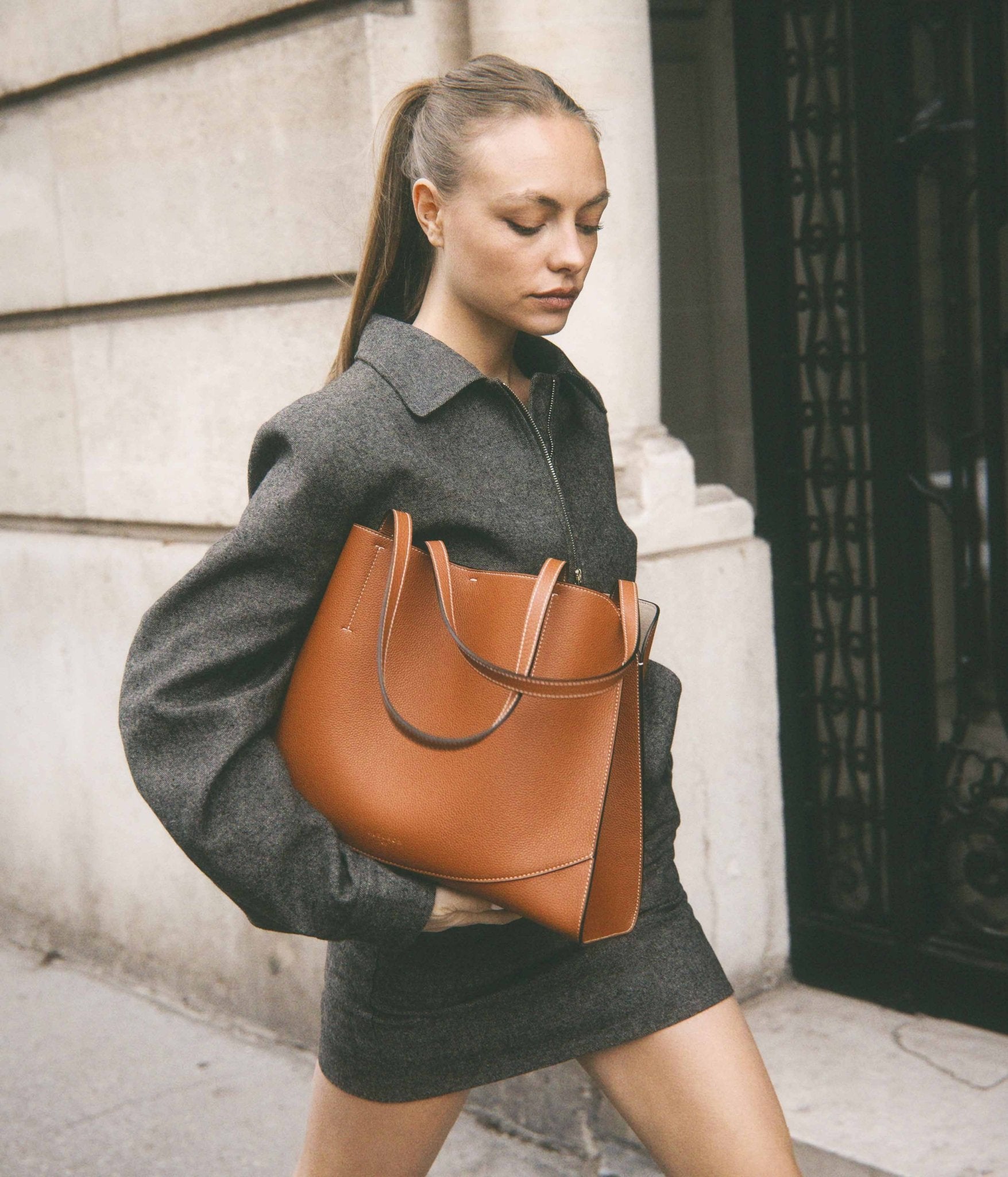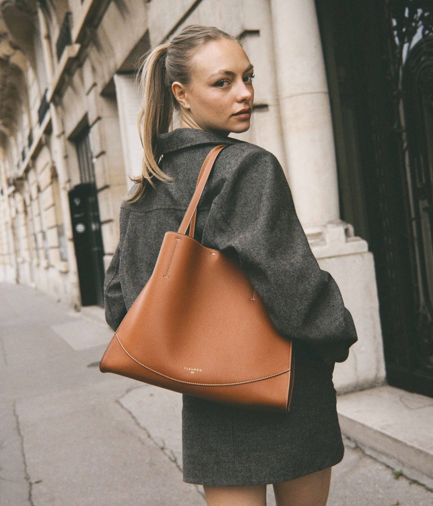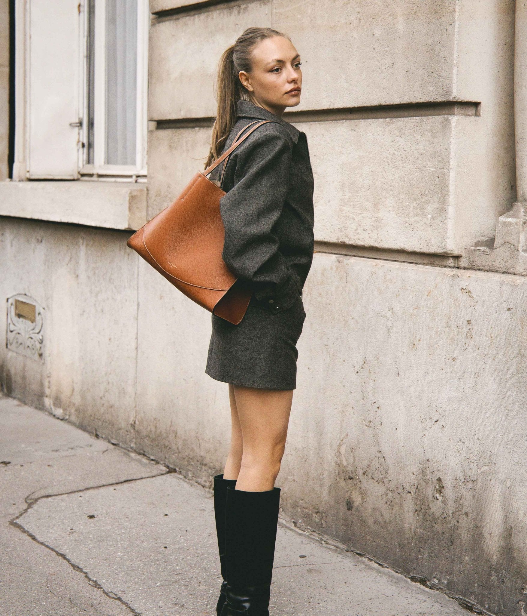 Handcrafted in Italy, it is distinguished by impeccable finishing and premium grained leather. Worn over the shoulder, it moves naturally with you. Its adjustable inner tie closure allows you to shape the silhouette to your needs, combining everyday functionality with effortless style.