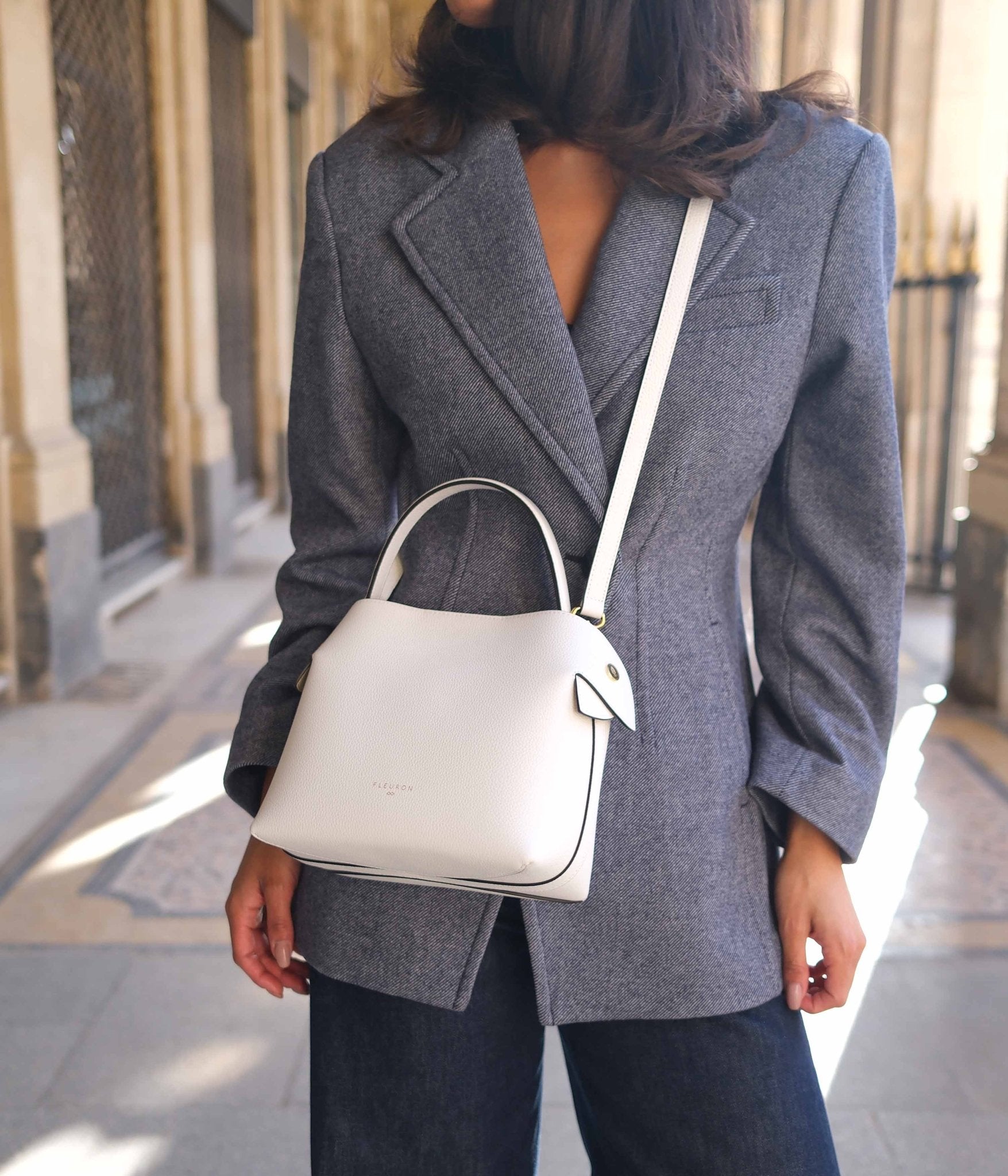 The Medium Swann in Blanc Cassé, with its soft and luminous shade, adds a touch of subtle elegance to any outfit. Its meticulous craftsmanship in our Italian workshop makes it a refined accessory for those seeking style and sophistication.